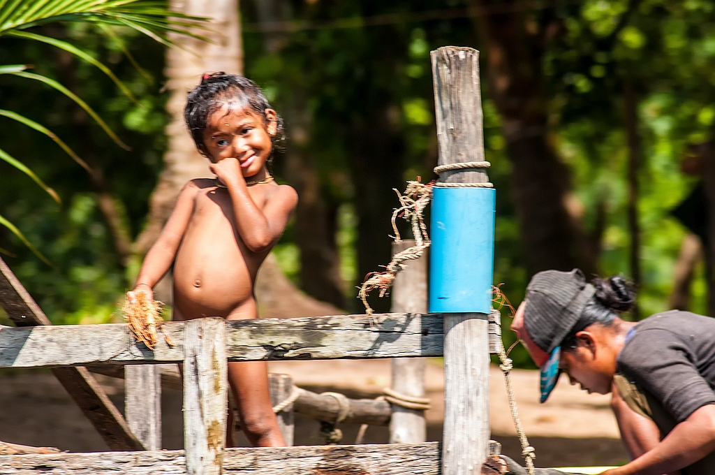 Doch zuerst fuhren wir zu den Mangrovenwäldern, wo es einen Pfad durch die Mangroven gab. Dieser war aus Beton und Holz, aber ohne jedes Geländer. Also nicht wirklich was für mich. Eine Stunde lang wanderten wir durch die Mangroven. Aber so viel spannendes gab es nicht zu sehen. Nur ein paar Fische und Cambodianer, die Plastikschlangen verkaufen. Ho sagte: "Das Normal. Hier keine Tiere sehen. Aber Hütten gut für Picknick".