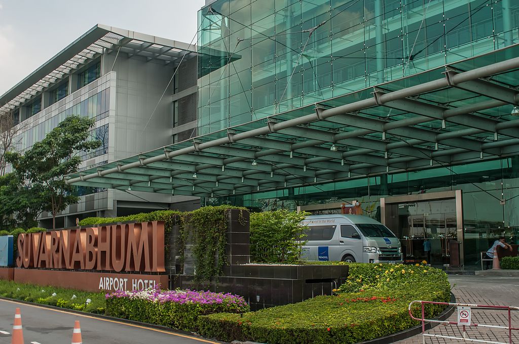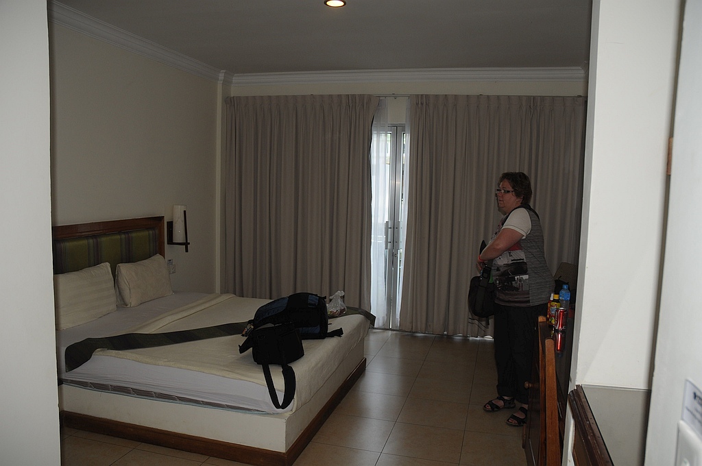 Das "Novotel Suvarnabhumi Airport" in Bangkok lag direkt neben dem Flughafen und hattete 4 Sterne. Unser Zimmer verfügte über Teppichboden, ein Fenster mit Blick in die drei Etagen hohe Lobby im Inneren, Klimaanlage, Flat-TV, Schreibtisch und Doppelbetten. Auch ein Schwimmbad gab es in der 2 Etage. Also eigentlich alles, was man sich so wünschte.