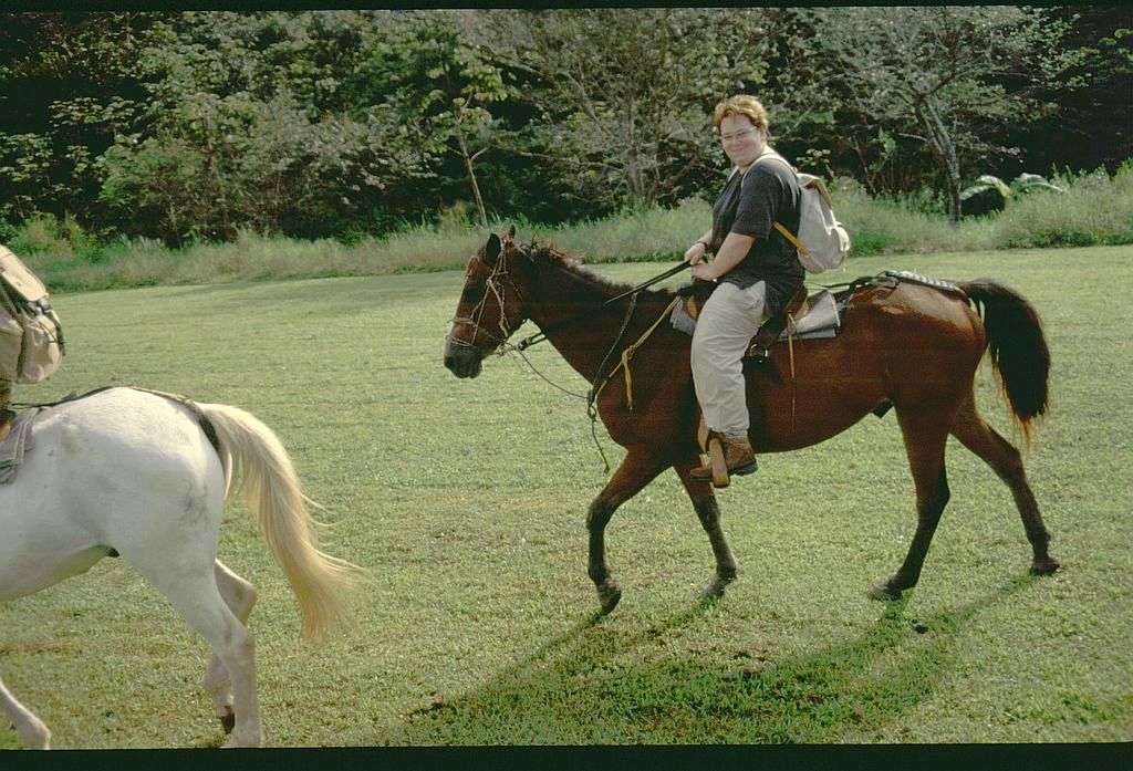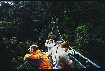 Die Rundreise war das schönste, was wir bisher erlebt hatten. Wir fuhren zum Vulkan Poas und besichtigeten dessen Krater, schwammen abends in dem vom Vulkan Arenal beheizten Wasser und übernachteten an dessen Fuß (mit Blick von der Terrasse unserer Hütte auf die austretende Lava). Weiterhin ritten wir auf Pferden durch den Dschungel, rutschten einen Wasserfall hinunter, liefen in 30m Höhe durch die Baumwipfel des Dschungels auf einem Canopy-Walk, fuhren mit einem Motorboot durch den Regenwald bis zur Grenze nach Nicaragua und vieles, vieles mehr. Auch besuchten wir das Naturschutzgebiet von Monteverde und verbrachten dort einen Tag und eine Nacht im Nationalpark.