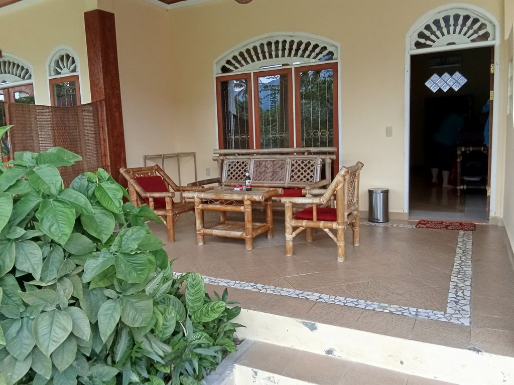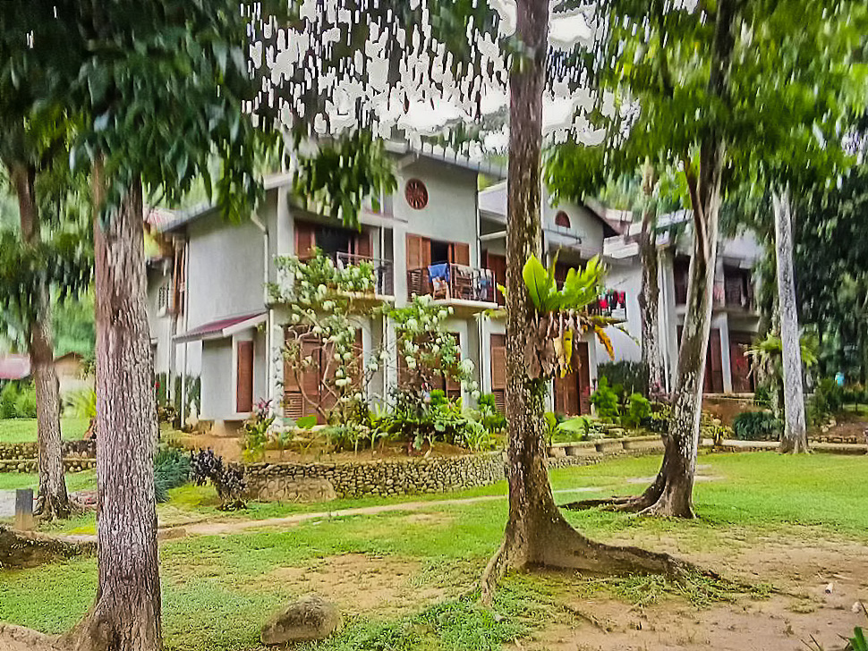 Die Hütte hatte zwei Etagen mit 2 Schlafzimmern und zwei Toiletten, Terrasse mit Garten, Balkon und im Hauptzimmer stand ein Doppelbett mit Mosquitonetz und es gab stabiles WLAN. Mehr war nicht. Keine Klimaanlage oder TV. In den Fenstern waren auch nur Fliegengitter und Fensterläden. Kein Glas. Der Boden im Bad und der Dusche bestand aus Kies. Für die Koffer hatten wir einen freien Raum, in dem keine Möbel, nur zwei große Plastikboxen standen.