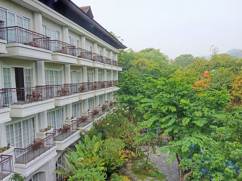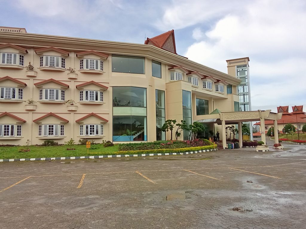 Das Sinaburg Hills in Berastagi (Sumatra) hatte 4 Sterne. Unser Zimmer ohne Balkon lag in der 3. Etage , die man mit einem gläsernem Fahrstuhl erreichen konnte und ging so. Es gab einen Spiegel, Schreibtisch, Einzelbetten, TV, Klimaanlage und warmes Wasser. Einen Pool im Aussenbereich gab es auch so wie den Frühstücksraum, wo man abends noch ein Bier trinken konnte.