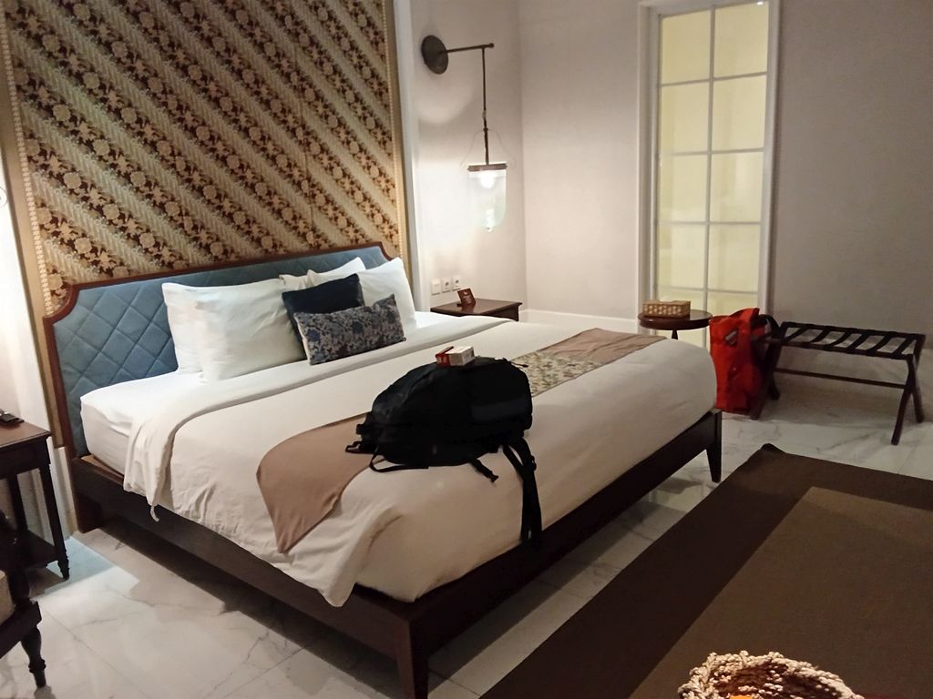 Das Plataran Heritage in Borobudur (Java) hatte 4 Sterne, einen Pool und es herrschte auf dem ganzen Gelände Rauchverbot. Im Zimmer mit Balkon und Blick in den Garten gab es einen leeren Kühlschrank, TV, einen Schreibtisch und ein Doppelbett. Überall war alles aus weißem Marmor. Für den Fahrstuhl benötigte man eine Karte, damit man ihn benutzen konnte.