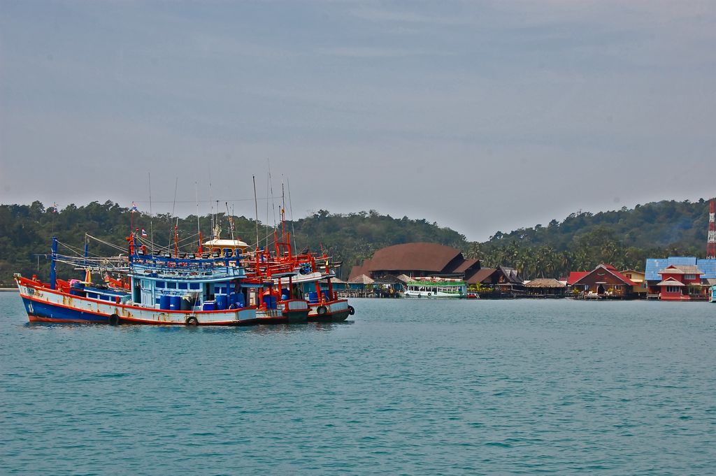 Dort wartete schon die Fähre auf das Festland. Wir setzten über und von der Fähre aus ging es dann wiréder mit dem Kleinbus zum Flughafen in Trat.