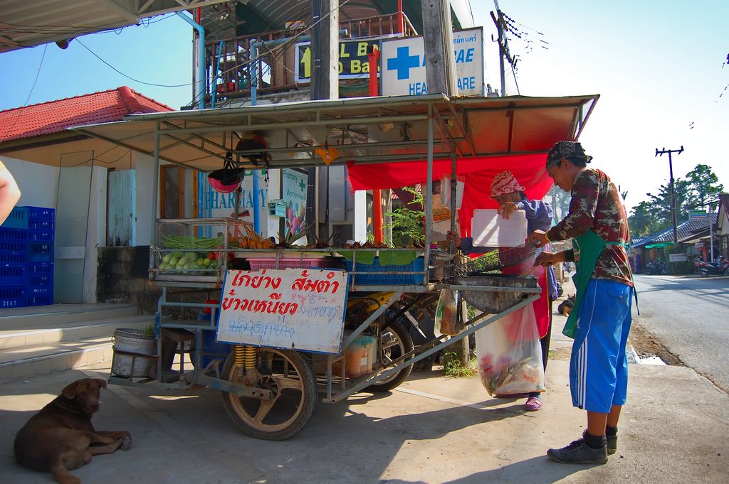 Zurück in Kai Bae haben wir und erstmal ein paar Hühnerspiesse an einer fahrbaren Garküche gegönnt.
